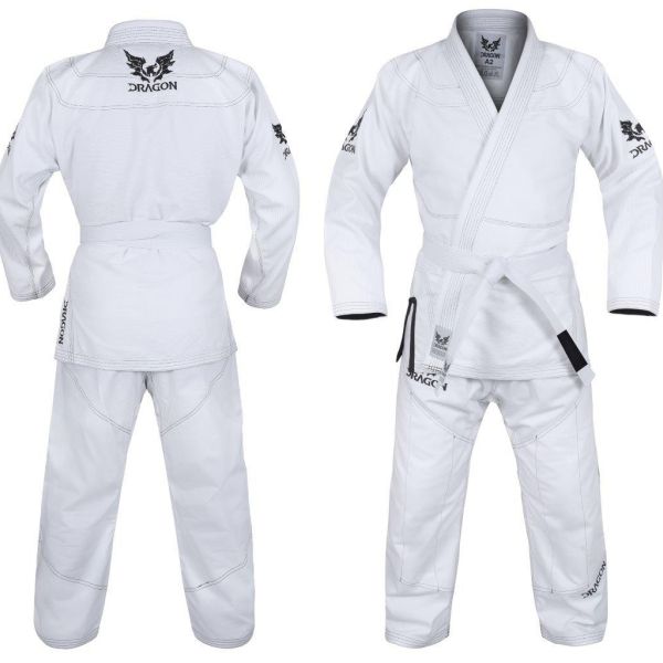 The V2 450gsm pearl weave Dragon BJJ uniform is an incredibly well priced,  superior quality Jiu Jitsu gi,  designed in conjunction with some of Australia's leading practitioners. Pro BJJ white belt with black tip + a breathable gi storage bag are also included.